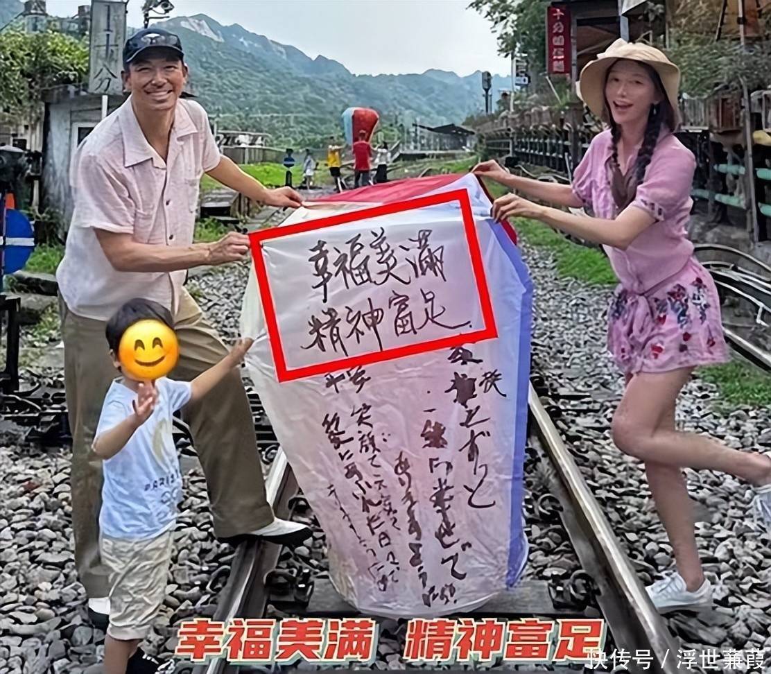 正如她晒出的一家三口放天灯的照片所示。